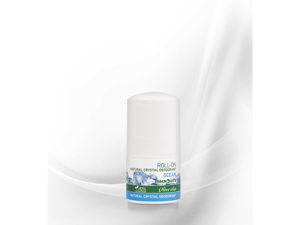 Prírodný kryštálový dezodorant roll-on Ocean (50 ml / 1.69 fl oz): Ponúka prirodzenú 24-hodinovú ochranu proti nepríjemnému telesnému pachu a bráni rastu mikroorganizmov spôsobujúcich zápach. S éterickou jemnou morskou vôňou.
